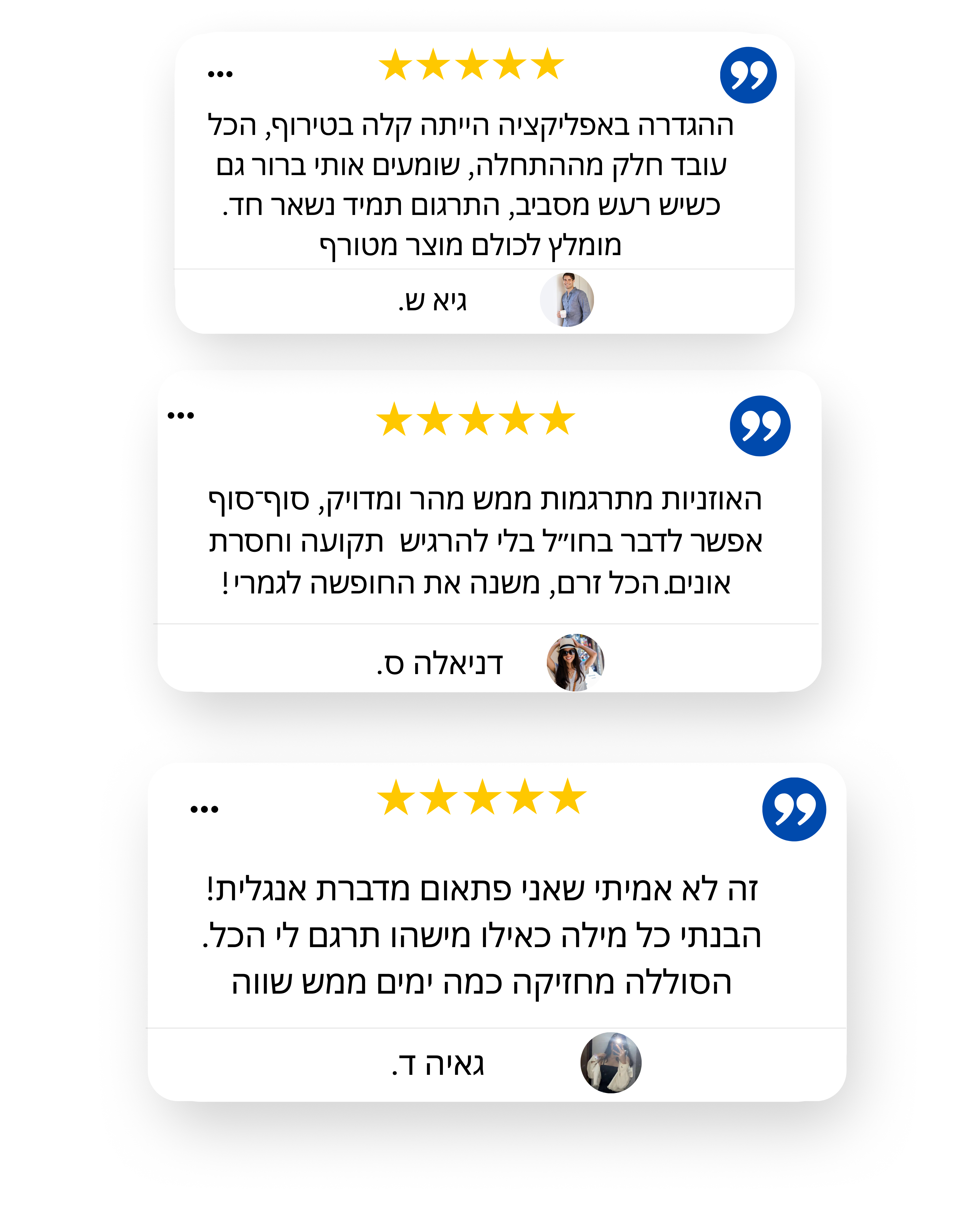עם תרגום מיידי ל־144 שפות, אחריות מלאה, משלוחים מהירים ושירות אישי מנצח